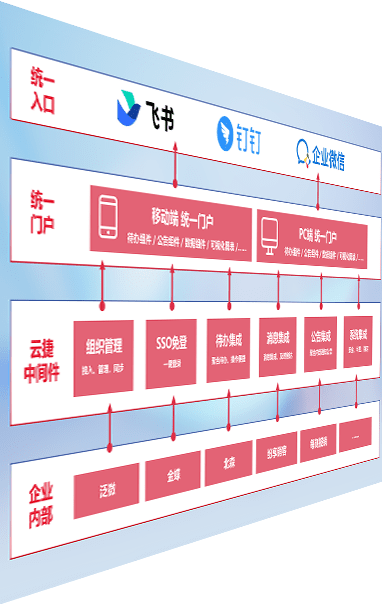 对协作平台提供支持服务,,支持企业应用与协作平台对接,,,包含组织同步、、、、消息集成、、、待办集成等。。支持目前主流的协作平台:钉钉、、、企微和飞书。。